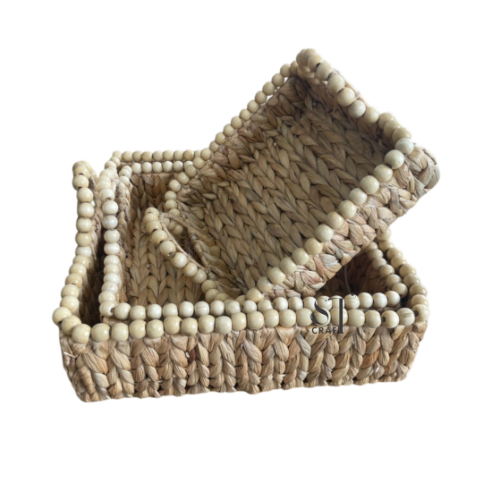 The Set of 3 Water Hyacinth Trays with Handles is handwoven from natural, sustainable fibers, combining durability with rustic elegance. Featuring three versatile sizes and sturdy handles, these trays are perfect for serving, organizing, or decorative display, adding warmth and natural texture to any home décor.
