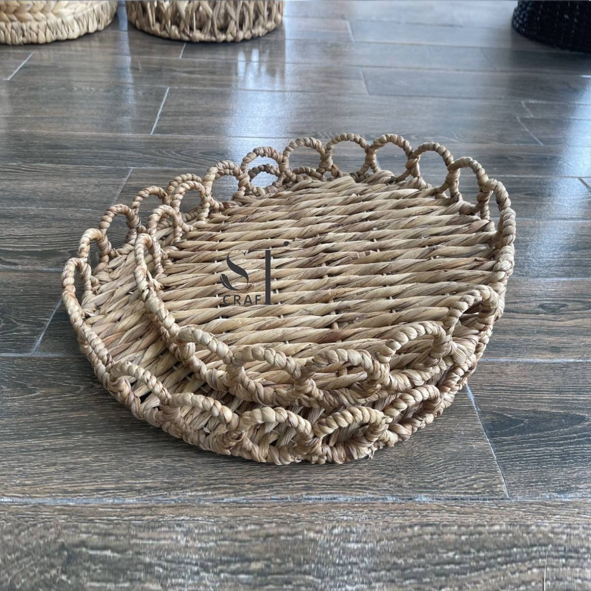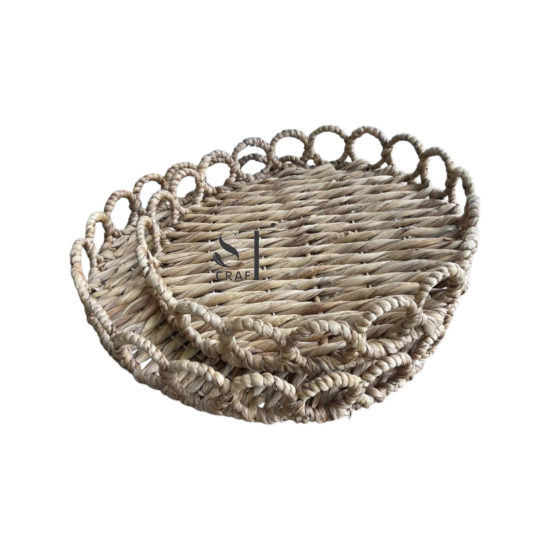 The Water Hyacinth Round Tray with Handles is handwoven from natural, sustainable fibers, combining durability with rustic elegance. Designed with sturdy handles for easy carrying, it’s perfect for serving, organizing, or decorative display. This eco-friendly round tray adds warmth and natural charm to any home décor.